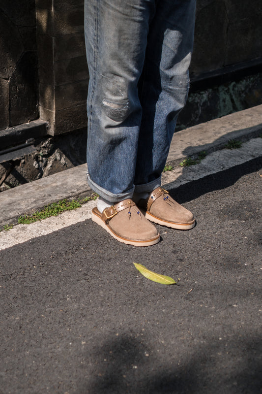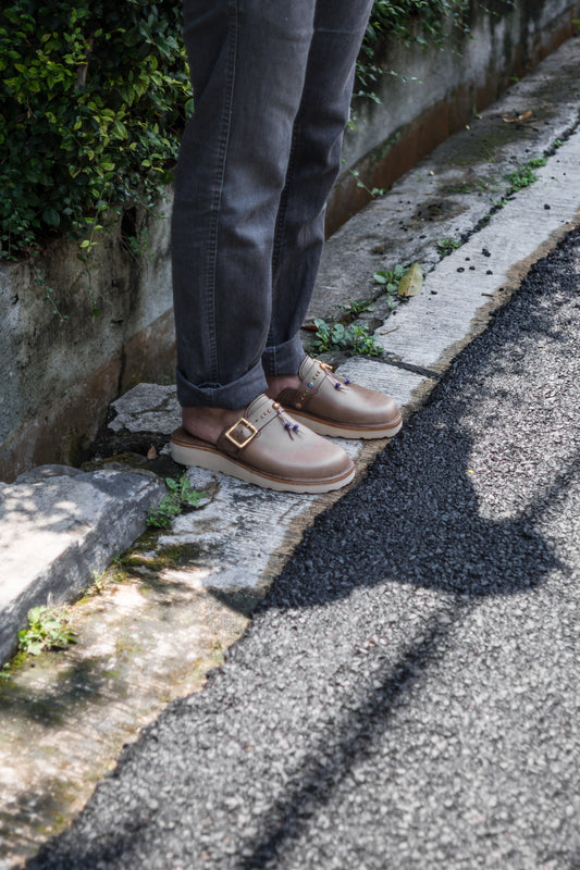 SANDALES SYH ENGINEER EN VACHETTA HUILE, DOS TEINT TOCHIGI