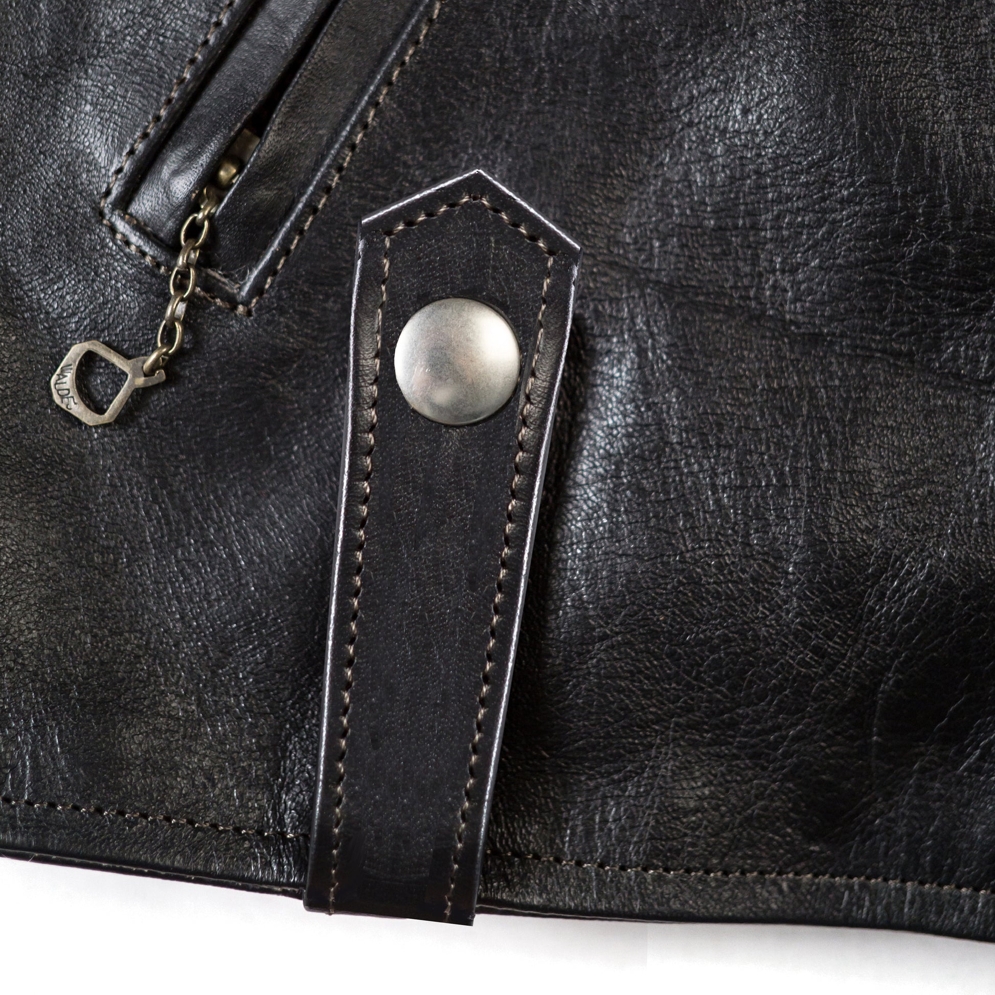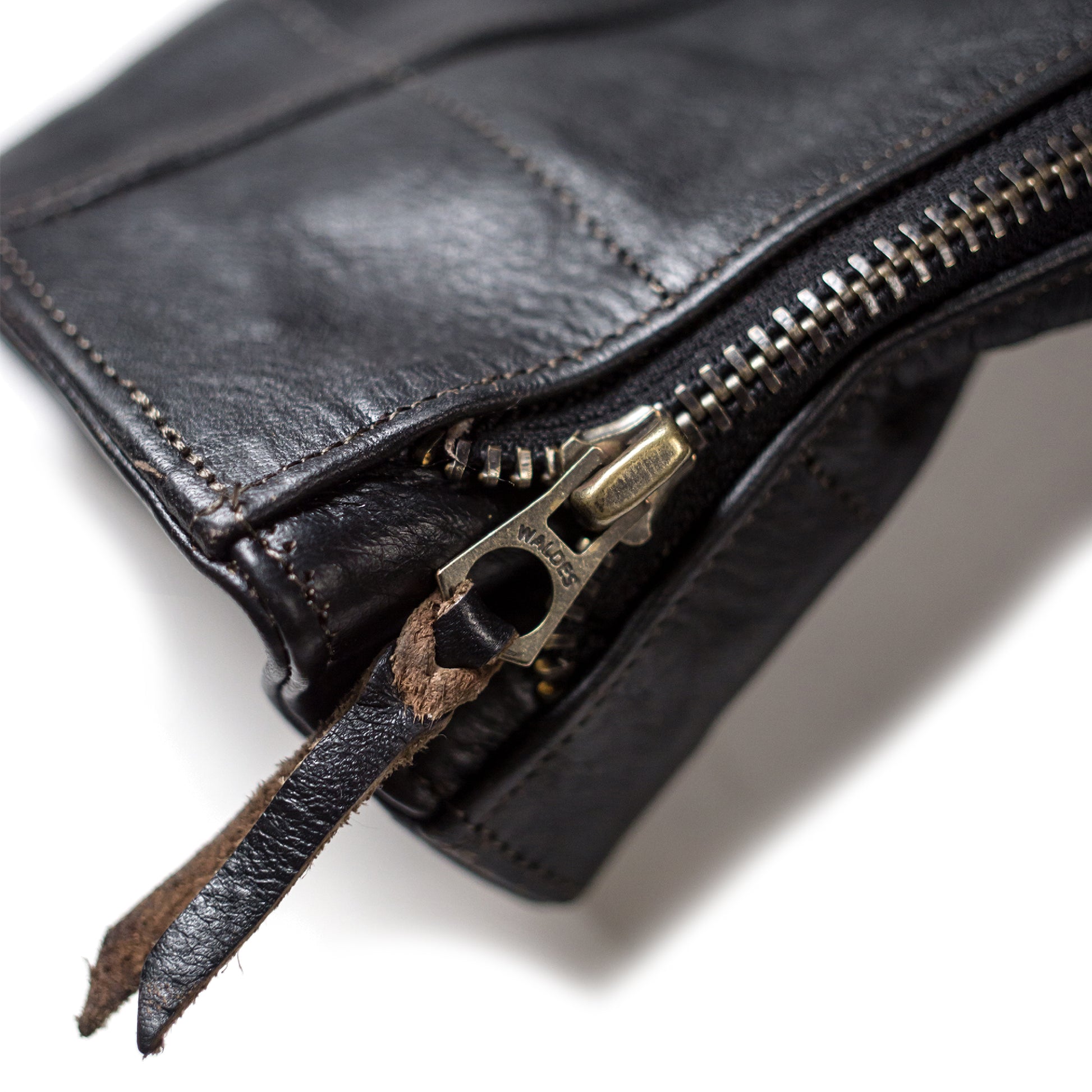 For main closures and pockets, the jacket is fitted with Waldes zippers, valued for their smooth pull, solid weight, and period-correct design. Built to age alongside the leather, Waldes hardware delivers long-term durability while preserving authentic vintage aesthetics.