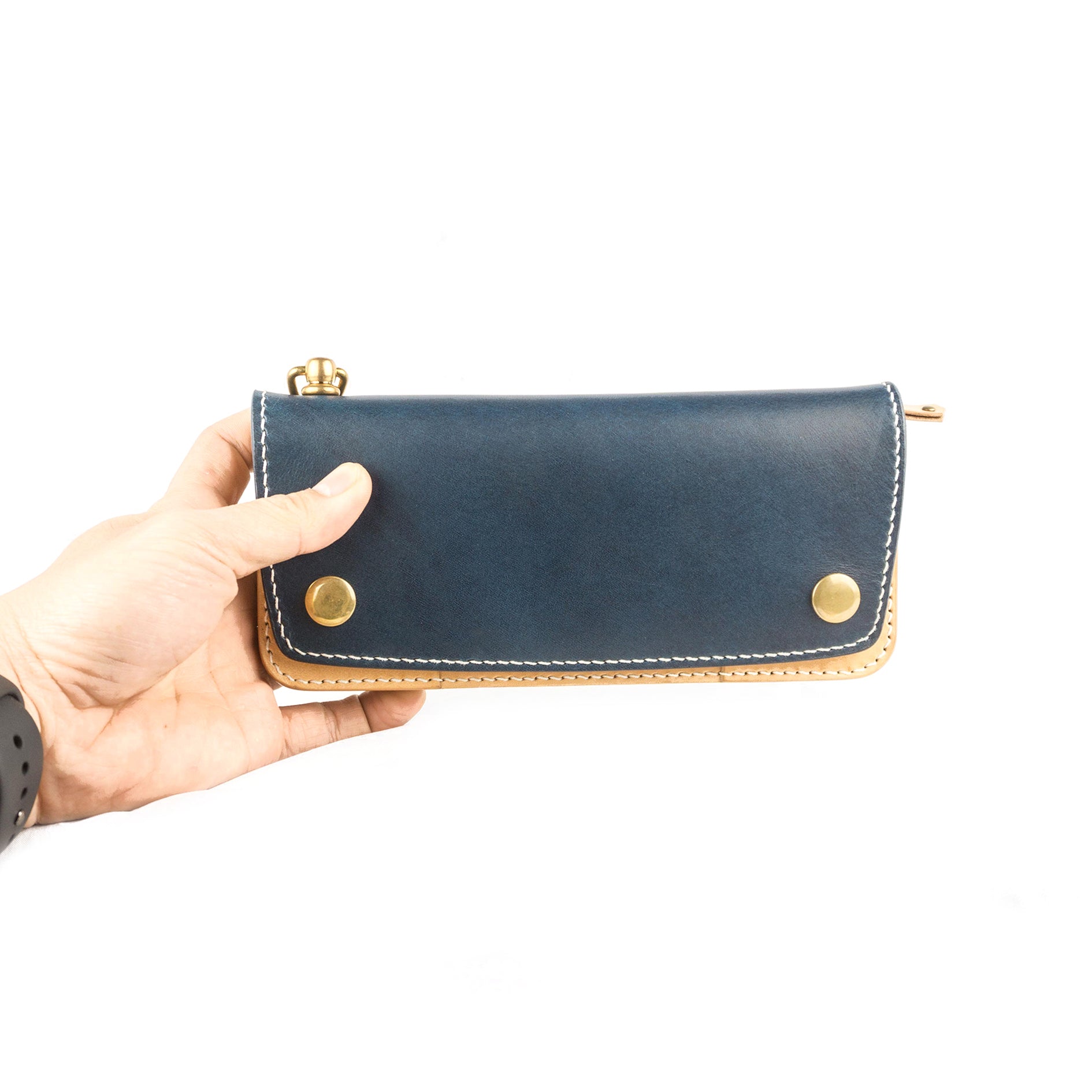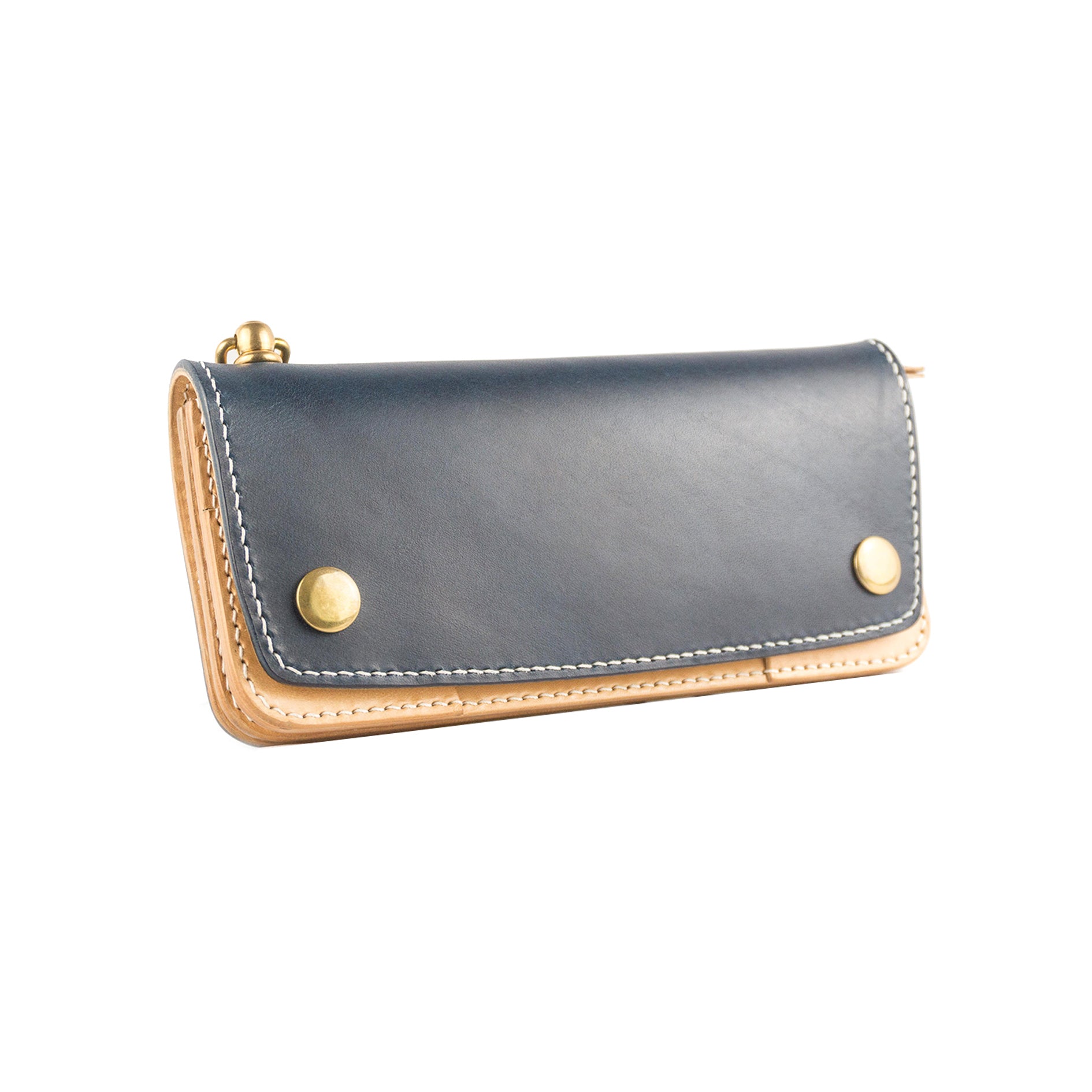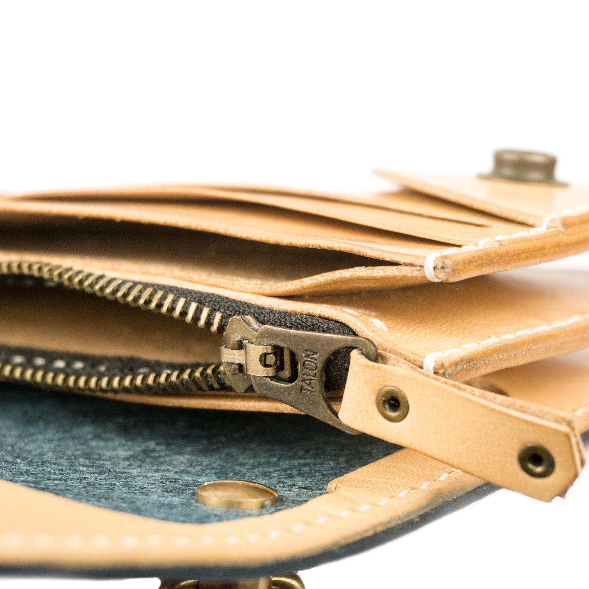 Inspired by the outlaws and bikers, Warusawa II wallet takes its design cues from traditional vintage trucker wallets, but is upgraded with details that only found in high end leather products. Well-made wallet made from Italian vegetable tanned leather from tannery Badalassi Carlo with Vachetta. Any brass hardware that is absolutely strong and corrosion resistant. The Zipper is from Talon Zipper.
